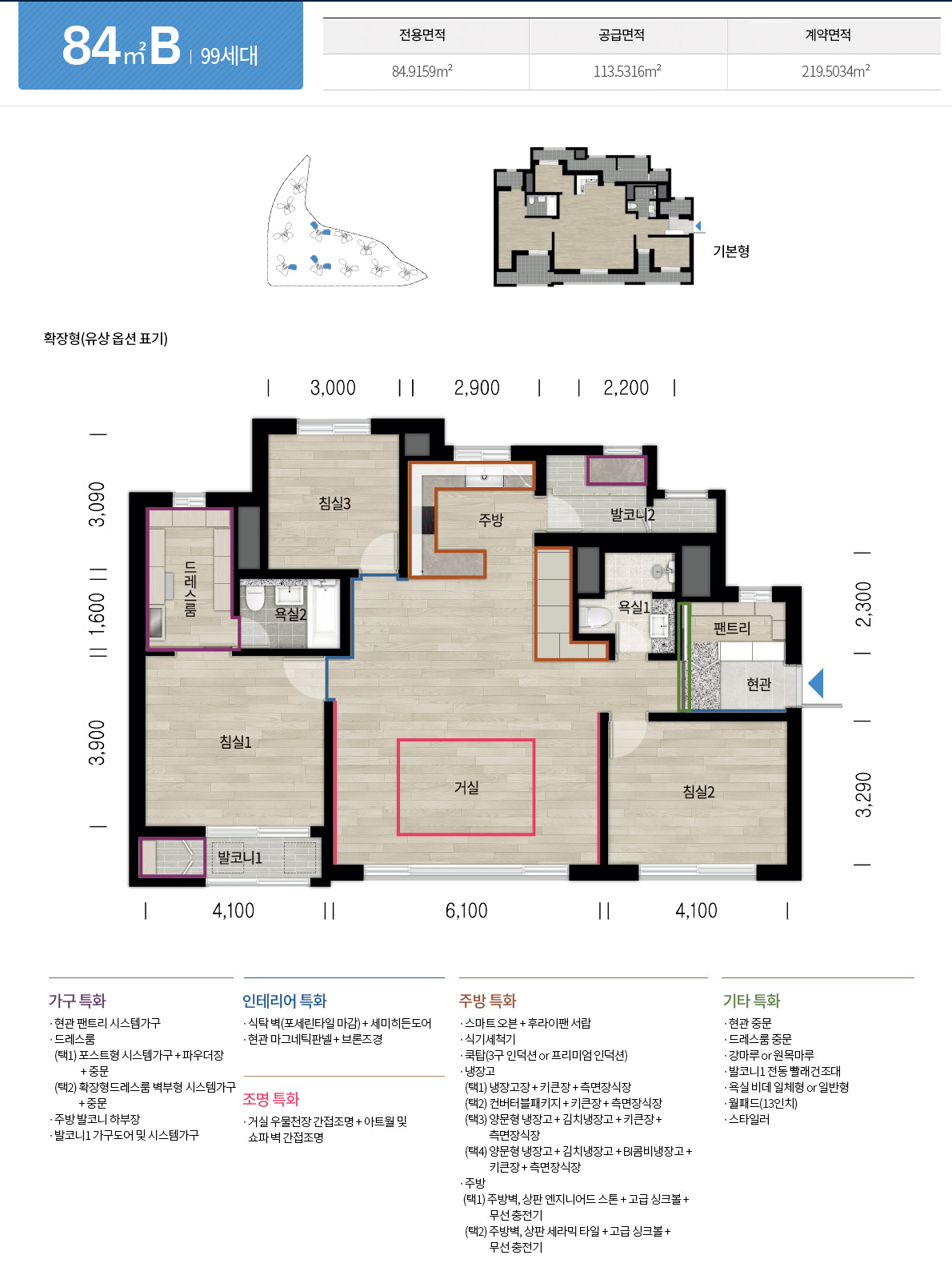 선호도가 높은 전용 59타입 세가지와 84타입 세가지로 나뉘어 공급됩니다.