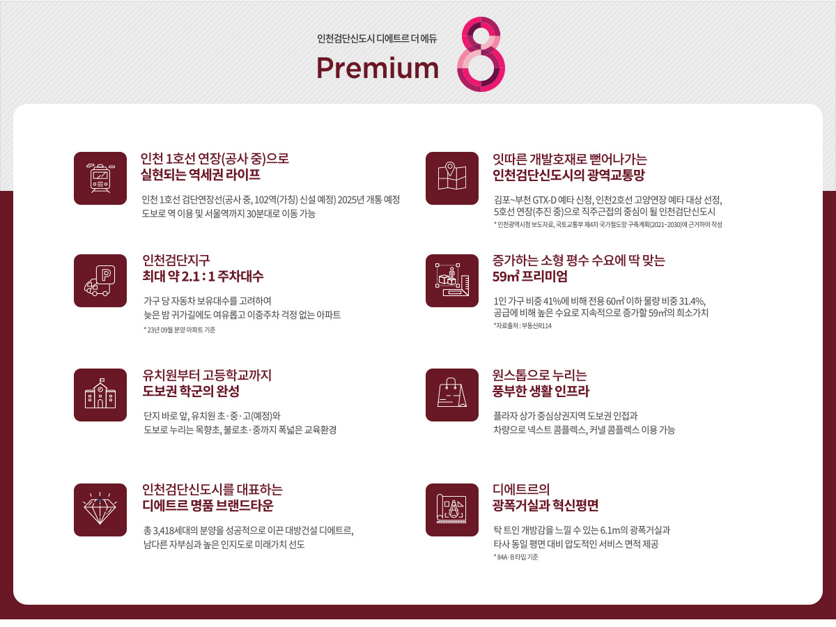 * 중소형 평면의 높은 희소가치 : 검단신도시에서 수요에 비해 공급이 부족한 전용 59 ㎡와 선호도 높은 84 ㎡위주로 구성되어 있습니다.
