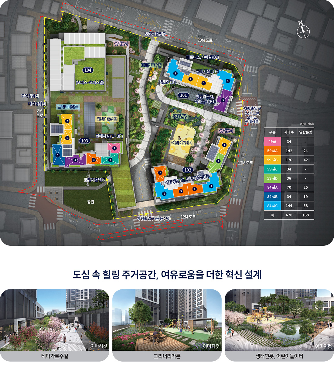 세대수 : 총 670세대 (일반분양 168세대)