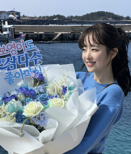 하늘색 니트와 베이지 톤 반바지로 꾸민 박보영은 제주도의 자연과 완벽한 조화를 이루며, 보는 이들의 시선을 단숨에 사로잡았습니다.