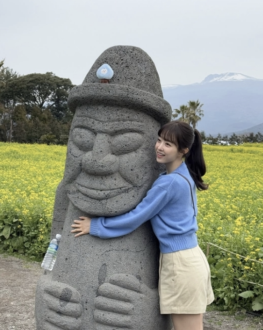 그녀는 삼다수 병을 들고 환하게 웃으며, 제주도의 상징인 돌하르방 앞에서 귀여운 포즈를 취하기도 했습니다.