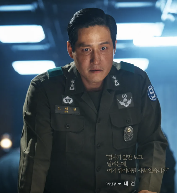 전두광은 국민들 앞으로 방송을 타며 수경사령관 임명을 놓고 정상호에게 맞서며 9 사단장 노태건(박해준)을 추전 하기도 합니다.