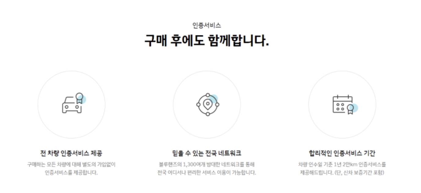 현대자동차 인증중고차의 구매 후 보증기간이 1년 또는 2만 km인 점이