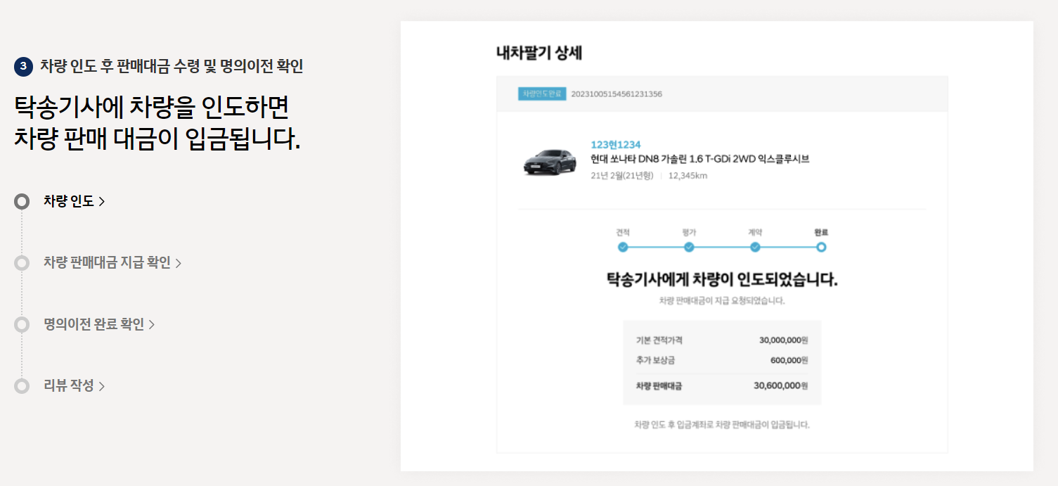 3. 차량 인도 후 판매대금 수령 및 명의이전 확인