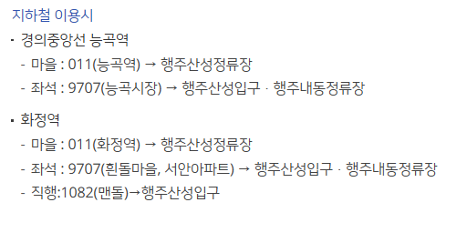 - 네비게이션 검색어: 행주산성 주차장 또는 행주산성광장