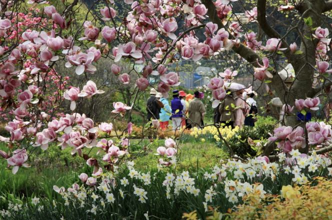 노란 목련 ‘맥신 메릴’을 포함한 희귀종들이 만개하며, 보기 힘든 종을 가까이서 만날 수 있습니다.