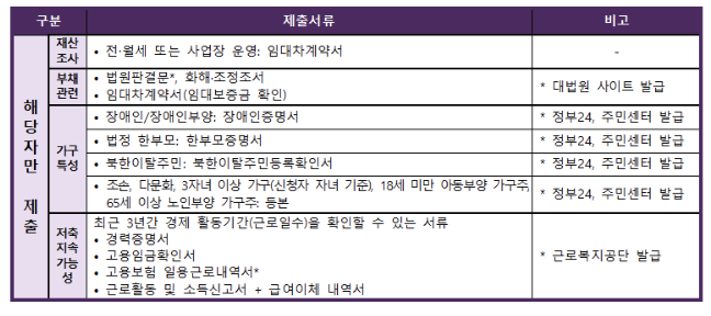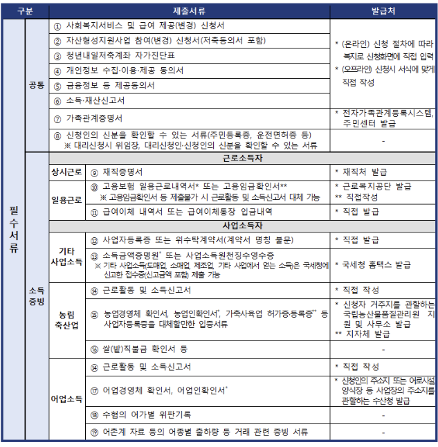※ 일부 서류는 읍면동 주민센터 또는 자산형성포털에서 발급 가능